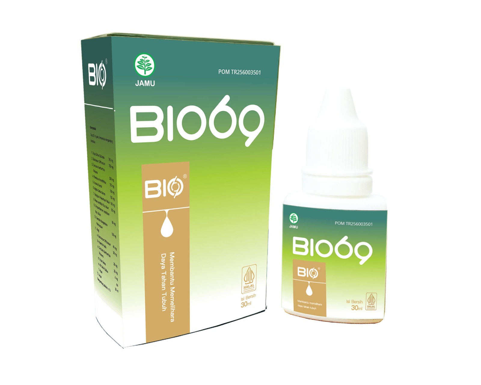 BIO 69 mengandung 7 unsur bahan herbal yang terdiri dari unsur rimpang (temulawak), daun (daun pandan), bunga (bunga krisan dan bunga mawar), umbi (bawang putih), kulit buah (kulit manggis), akar (akar alang – alang), biji (biji jinten), sehingga baik dikonsumsi untuk semua lapisan masyarakat Indonesia serta membantu memelihara daya tahan tubuh.